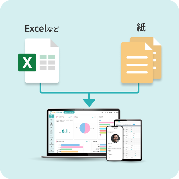 散在していた従業員情報・資格情報・評価結果・入社手続きなどを一元管理し、業務を効率化。
