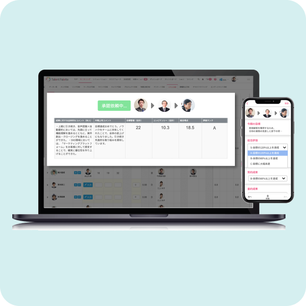 評価シートを個社に合わせて柔軟に作成可能。運用フロー構築、相対評価、評価者分析まで対応し、評価業務を効率化