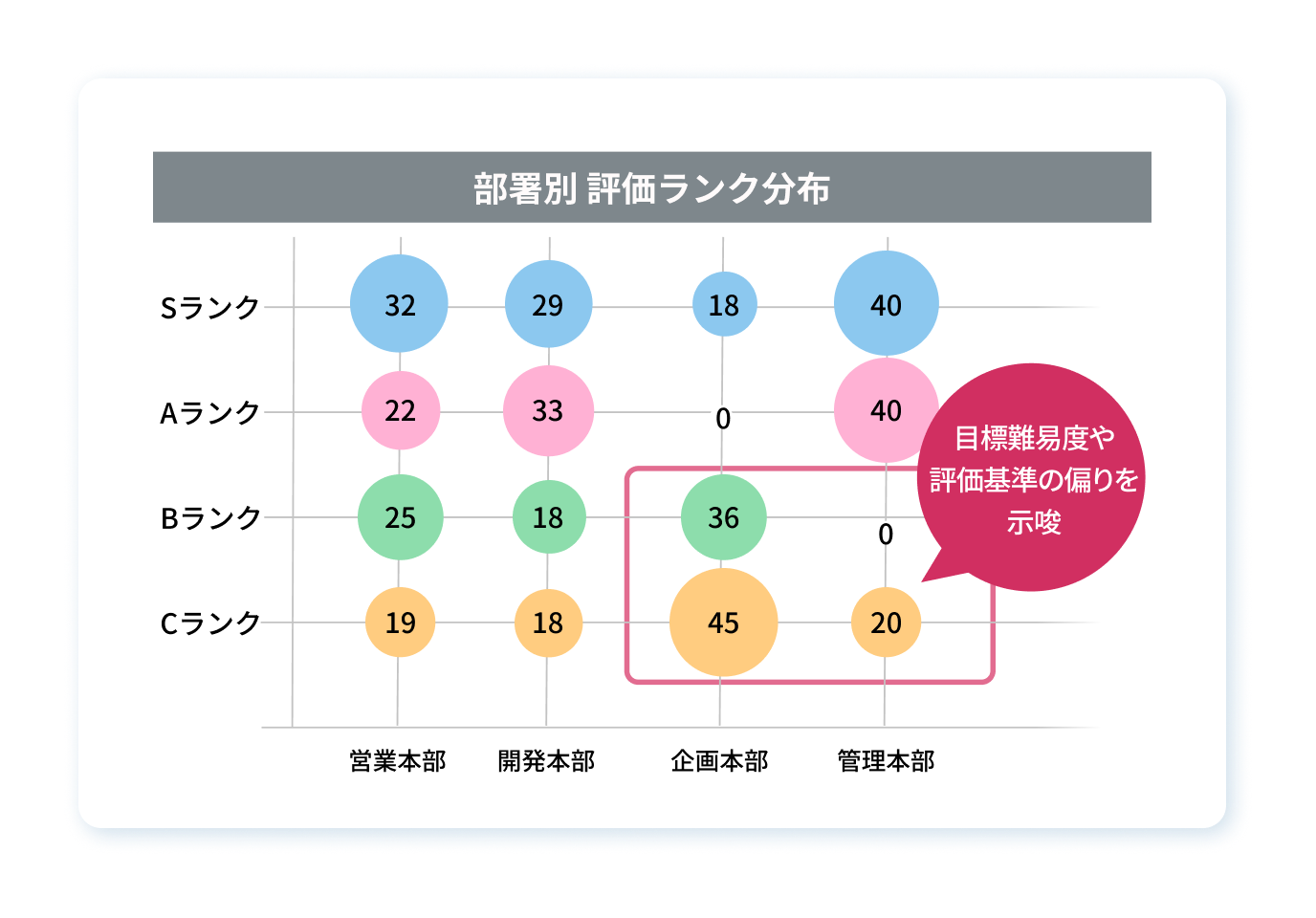 - 相対評価による、客観的なデータに基づいて評価バランスを公平に保ちます。
