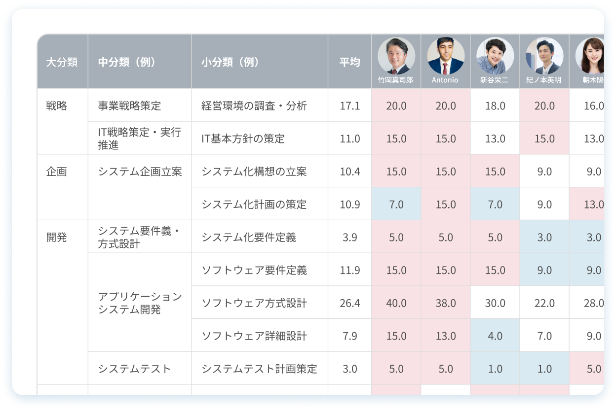 - 必要なスキルと経験値をタスクベースで定義し、採用・配置・育成基準を統一する