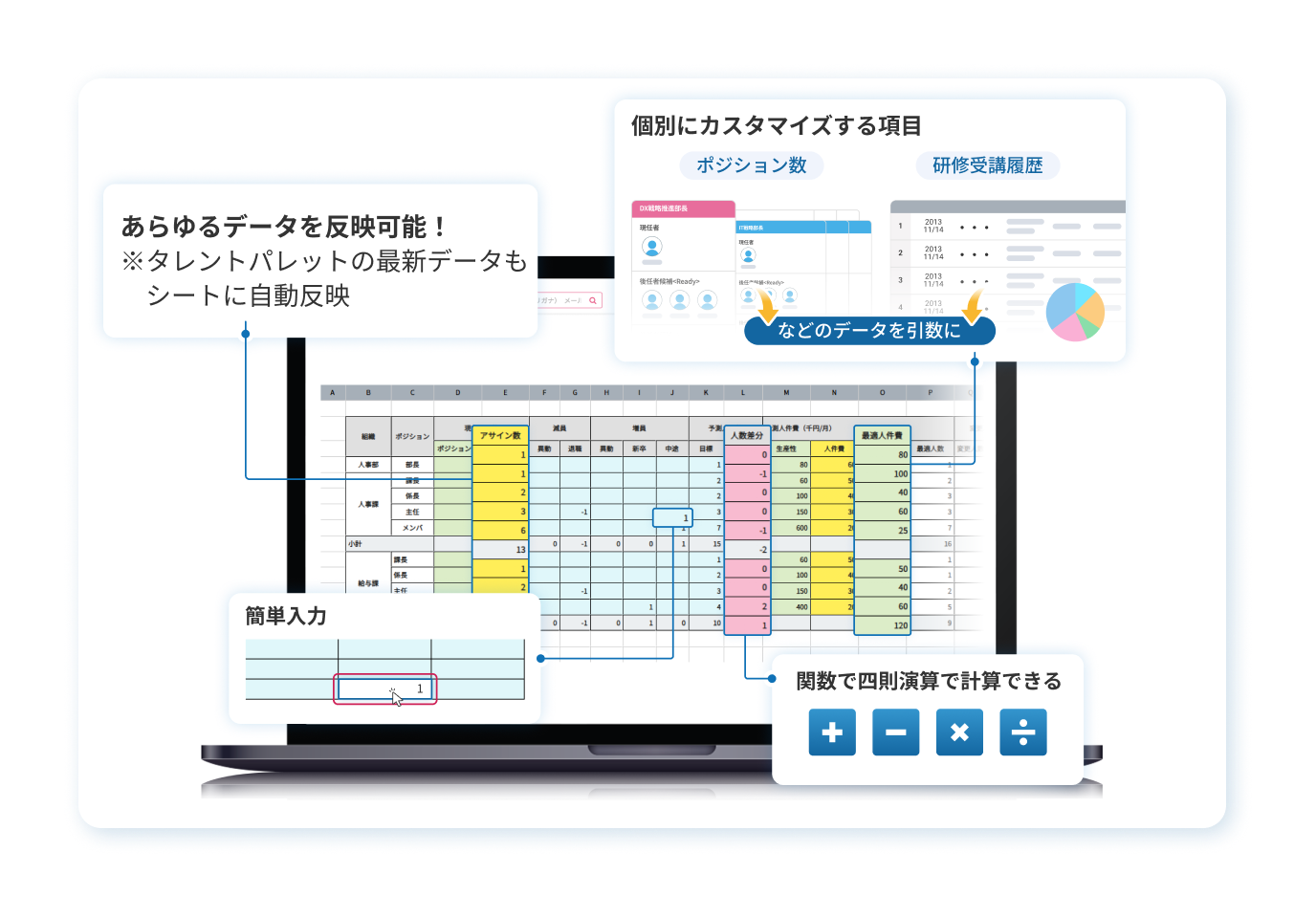- 常に最新の人事データと連動するため、計画と実績のギャップをリアルタイムで確認できます。