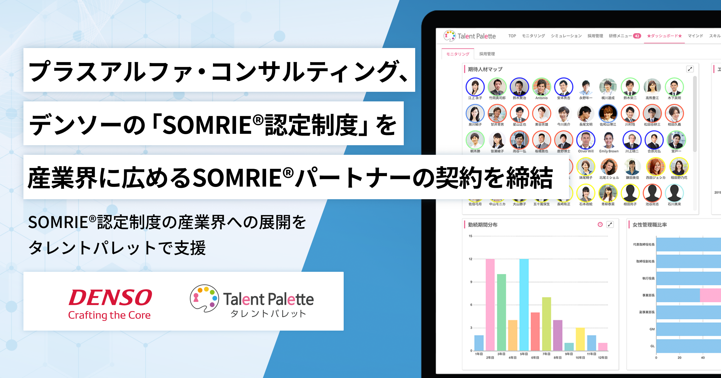 プラスアルファ・コンサルティング、 デンソーの「SOMRIE®認定制度」を産業界に広めるSOMRIE®パートナーの契約を締結~SOMRIE®認定制度の産業界への展開をタレントパレットで支援~