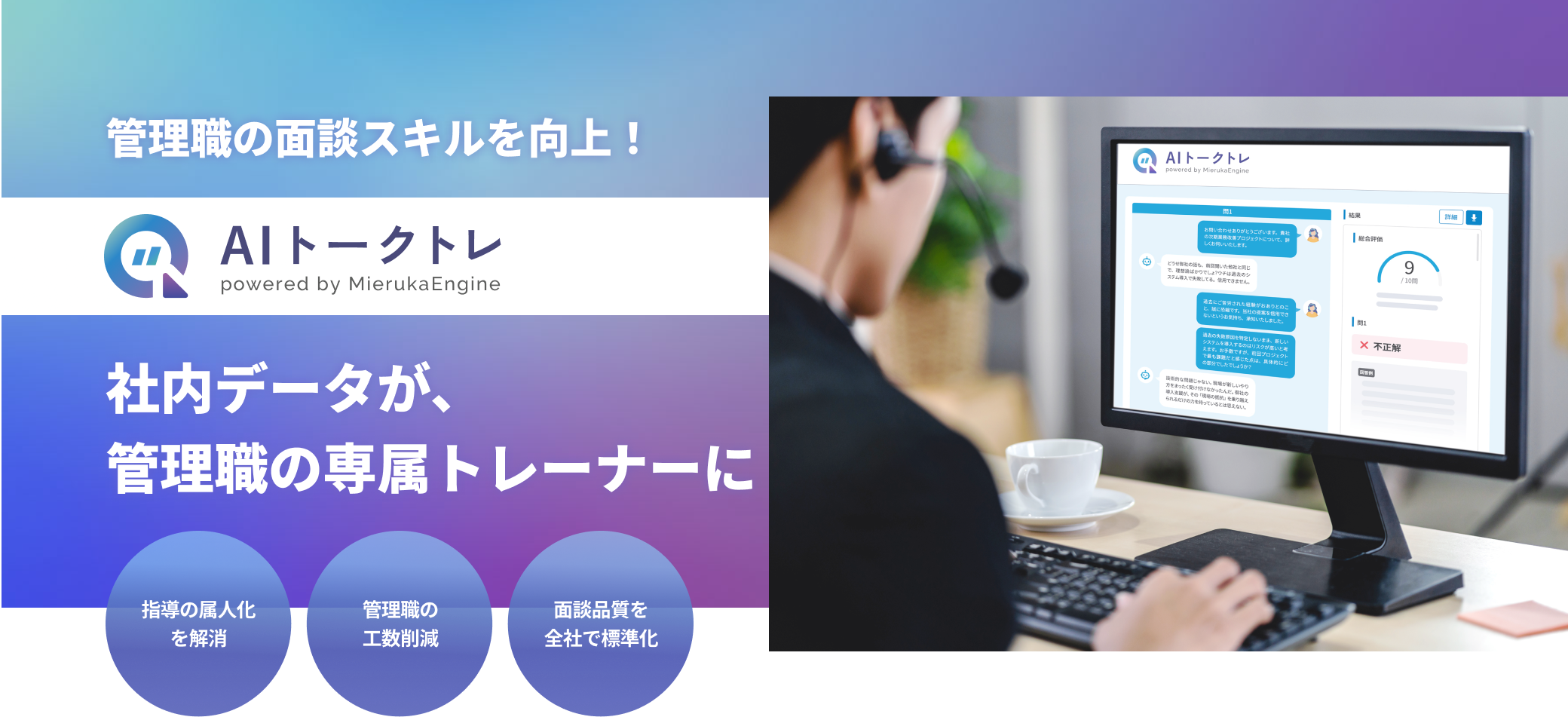 貴社データ(優秀な管理職の面談履歴や、貴社の評価制度・コンピテンシー)をAIが学習。「評価に納得できない部下への対応」や「目標未達者への動機付け」など、自社のリアルな課題に基づいたシナリオで、何度でも実践的な練習が可能です。AIが客観的なスコアと改善点を即座にフィードバックし、管理職の対話スキルを底上げします。