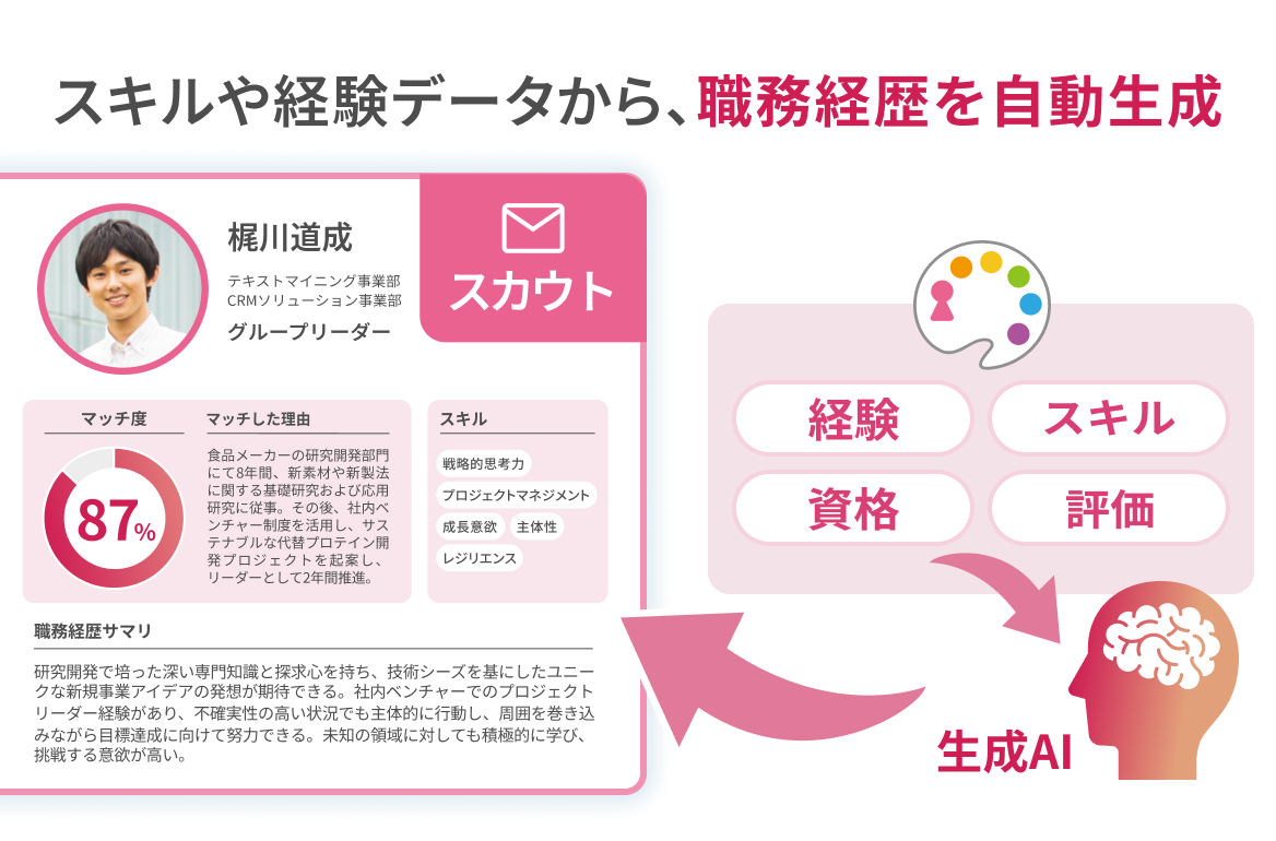 生成AIが解析し、候補者選定と職務経歴を生成 - アナログな社内公募をシステムに一元化する